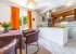 On the ground floor you will find an entrance hall, a large living room with a large high-definition TV with DVD-Player, satellite-TV and a hi-fi system with speakers spread all over the house and pool area. As well as a generous dining room and a fully equipped kitchen where you will find a bar together with all kinds of kitchenware and appliances. In addition there is a laundry- and bathroom equipped with two washing machines, a toilet and a lavatory. The floor also includes a winter garden and a special room with a large wood/charcoal grill made of massive stone. All around the villa extends a wide flagged and partly roofed terrace with a stone pavilion and beautiful planting.