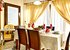 - Dining area overlooking the pool and terrace, through access patio doors.