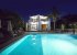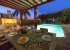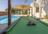 As you leave the lounge through the double French doors you will arrive at the stunning private pool area. The glistening 10m by 5m pool (with heating option) stretches across the patio area. It is surrounded by 8 sun loungers, 2 parasols, 4 drinks tables and the outdoor dining area. There is also a sofa set allowing an outdoor lifestyle at all times. of day and night.