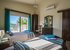 As we walk up the stunning marble staircase we arrive at the upper landing. Here you will find the washing machine along with a sink and built in cupboards. Straight ahead is the romantic master suite featuring a king sized bed, built in wardrobes, catape cheval mirror, en suite bathroom and two sets of patio doors; the triple set leads out to the shared veranda which offers incredible panoramic sea view and meditating sounds of the waves when falling asleep. The second set of French doors lead out to the private veranda on which overlooks the sea and surrounding fields and mountains.