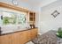 The kitchen area complete with breakfast bar and 4 stools is equipped with fridge freezer, electric oven and hob and there is a window above the double sink which lets in the glorious sunshine.