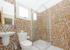 The ground floor has a handy utility room with washing machine, broom and mop. There is also a large shower room with gold and brown mosaic tiles, vanity mirror and glass shelving for your toiletries.