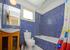 A stained glass window over the stairs allows the bright sunshine to flood the villa. Stairs complete with handrail lead to the 1st floor bedrooms, a double and a twin, and family bathroom. The bathroom with blue and white mosaic tiles has shower over bath, under sink storage and glass storage shelves.