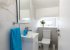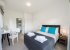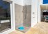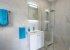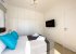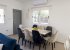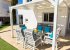 Enter into a spacious open plan living/dining area and be impressed with the stylish simplicity of the furnishings. The lounge area has a corner sofa complimented by quality blinds and cushions, and a coffee table. A flat screen TV sits on the TV unit, whilst two windows let the light flood into the property. The dining area consists of dining table with 8 chairs. Decorative vases and wall canvasses complete the property’s stylish look. A side door leads out on to a covered patio area where the outside table is located, as well as an outdoor shower