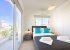 The second double bedroom is located at the front of the property and has patio doors, with curtain, which lead onto a second private balcony. It also has windows and a blind, bedside cabinets and lamps and fitted wardrobes.
