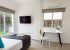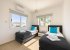 The first double bedroom and twin room, both have views of the pool. The master double room has a divan bed and windows with a blind. Patio doors, with black out curtains, lead out onto a private balcony. Bedside cabinets with lamps,