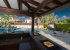 There is a large area by the pool with plenty of space, a beautiful garden and a bar