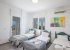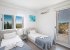 Downstairs, the villa has a spacious living, dining and kitchen area with patio doors that offer sea views from every angle. The furniture and décor is contemporary and stylish with ample seating in the living and dining area. The modern kitchen is fully equipped with all appliances and utensils and includes a breakfast bar with seating area. There is also a WC on this floor