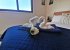 3 bedrooms that comfortably sleep up to 9 guests. The bedrooms are all upstairs, the master bedroom has a double bed, a sofa bed, and an ensuite shower. Bedroom 2 offers two double beds and balcony access and the third bedroom has a double bed and balcony access.