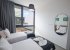 As you enter the villa, you will find the very stylish, open-plan living room, kitchen and dining area surrounded by patio doors leading to the garden. The living room is complete with a comfortable seating area and Smart TV with Satellite Channels. The dining area features a table and chairs to seat 6 people, and the kitchen is fully equipped with all utensils and appliances required for a comfortable, self-catering stay.