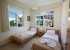 Upstairs, there are 3 spacious bedrooms. The master bedroom has a double bed and en-suite bathroom, another double bedroom and a 2 twin bedroom. All bedrooms have fitted wardrobes and bedside tables. There is a family bathroom with bath tub and overhead shower.