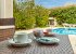The colourful, mature garden is fenced in and consists of a beautiful pool that is bathed in sunshine all day and is surrounded by a terrace containing sun beds, tables, parasols and BBQ. After watching a beautiful sunset, the garden and pool are fully lit for a romantic evening.