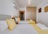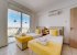 The open plan space offers a modern, fully equipped kitchen, a lounge area with 2 sofas, one of which can be converted into a sofa bed and a TV, plus a dining area seating 6 guests at the dining table – a great place to enjoy quality time together out of the sun. The living area leads out to the private balcony which boasts gorgeous views of the Mediterranean Sea, an al fresco dining set up and sun loungers for those wanting to relax in the sunshine.