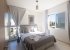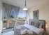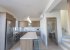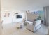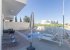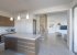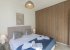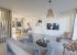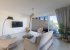 Upon entering the villa, you are welcomed into a bright and contemporary open-plan living, kitchen, and dining area. The stylish kitchen is fully equipped with all modern appliances and amenities required for short-term stays and features a central kitchen island with seating for two on bar stools. The dining area comfortably seats six guests, while the living room offers a comfortable arrangement of sofas and armchairs, creating a perfect space to relax and unwind. A guest toilet is also conveniently located on the ground floor.