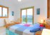The interior staircase lands on the upper level, which features a second double bedroom and two twins, the three of them with en-suite private shower rooms and balconies overlooking the bay.