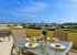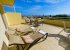 1 bedroom top floor sea view apartment. South facing balcony with sun beds, BBQ & comfy sofa set