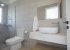 As you enter the villa, you will find the spacious, and very modern open-plan living room, kitchen and dining area, with large patio doors leading to the garden and pool. The living room features a comfortable corner sofa, widescreen Smart TV with satellite channels and wi-fi connection. The dining area has a table and chairs to seat 10 people and the kitchen is fully equipped with all appliances and utensils needed for an enjoyable self-catering stay.