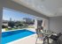 Outside, the villa offers a spacious garden area with a private pool, sun loungers, a barbecue, and a shaded dining space—ideal for relaxing or enjoying meals outdoors.