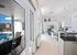 The villa features a large, open-plan living sitting and dining area with seating for 8 persons. The modern kitchen is fitted with modern appliances and has a breakfast bar, with additional stools.