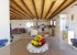 The adjacent dining/breakfast area looks onto the outdoor terrace and the infinity pool, and has a sturdy wooden table and six chairs. This area is open to the lounge. This is a wonderful, open space easily accommodating large sofas, an integrated wood burning stove and the TV entertainment unit. There is also a Bose Music System/CD Player. A second set of patio doors lead out to a covered relaxation/reading area which is ideal for those who prefer the shade.