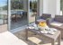 Middle bedroom is twin beds with bedside table & lamp. Dressing table & mirror fitted wardrobes. En-suite shower room with sink & toilet. Patio doors to private balcony with glass screening with glass top bistro table & 2 chairs. Air con & black out blinds