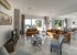 Dining table & 8 chairs with patio door access to garden & outdoor sofa set for 4.
