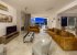 Lounge area has 1 x 3 & 2 sofa in tan micro leather material. 3 single relaxing chairs. Glass topped coffee table. Large Flat screen TV & Receiver box (with premium channels)**. Open fire/stove in recess in wall. Large sliding patio doors with access to poolside & the large square table with chairs for 8.