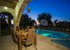 After accessing the villa’s grounds by large iron gates and long driveway (plenty parking), the villa's front door opens into a large airy open plan space comprising the lounge, inside dining area and kitchen. The cool and comfortable lounge is furnished with a large 3 seater sofa in rustic style, 2 large armchairs & TV with Satellite & DVD player. The centrepiece is an open log fire for those who wish to take advantage of some daytime sunshine and a cosy evening atmosphere in cooler winter months.