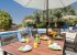 The first dining area is sheltered by a wooden pergola and features a picnic table seating 8, a classic stone BBQ for those alfresco dinners and a pool table for those who fancy a few games in the shade. The second table and chairs is just outside the living area and has a parasol for shade as required.
