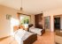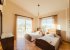 The second upstairs bedroom is a twin room. It features built in wardrobes, en suite bathroom and patio doors leading out to the large shared sea facing veranda.
