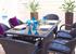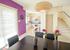 This fantastic property will amaze you with its splendor as it is furnished superbly throughout with a wonderful mixture of up to the minute furnishings and colorful decorations. Relax in the cool air conditioning on one of the two comfortable settees, enjoy watching the satellite channels on the flat screen TV, and rest your drink on the black coffee table or matching side table. A trendy black and white stripy lamp provides mood lighting. The deep purple color theme, decorative vases and flowers add a true touch of class. A patio door with blinds leads to the front patio of the property.
