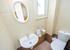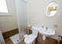 The first floor has 3 air-conditioned bedrooms, 1 double and 2 twin rooms and a family bathroom. The family bathroom has a shower over bath, window, sink and vanity mirror.
