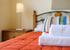 The other twin bedroom with large mirror, is located at the front of the property, meaning the balcony makes the most of the wonderful sea views.