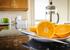 A good-sized kitchen, with wooden units and black granite worktop, is fully equipped with matching white goods. They include an electric oven and hob, dishwasher, fridge freezer and washing machine. Four matching white and chrome bar stools are provided for casual dining at the breakfast bar, which also benefits from low-level lighting. The window, with blind, above the sink gives perfect sea views.