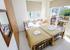 For more formal dining, make your way into the dining area, with glass topped wooden table and 6 chairs. A small matching occasional table is also available. Light streams through the patio doors and window, both of which have blinds, should you need to cool the room down.