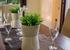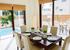 When you enter this property, you will be thrilled with the amount of light that comes streaming through the many windows and patio doors. All of them have brightly coloured orange blinds, to keep the room cool through the heat of the day. Enter the air-conditioned lounge where there are 2 comfortable black leather sofas, a wooden coffee table, TV unit with flat screen TV. A round Greek style column separates the lounge and dining areas, and decorative canvasses and accessories, give the villa a homely feel.