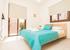 The raised outdoor patio area is reached through doors leading from the dining and kitchen areas. The mosaic tiled pool sits in the middle of a pretty walled garden with white stone borders planted with colourful shrubs and palms. You get a real sense of seclusion and privacy from this area. Enjoy relaxing in this peaceful atmosphere on one of the sunbeds laid out around the pool, with a parasol, or make the most of eating al fresco, the meals you have cooked on the gas BBQ. A glass dining table and 6 chairs are provided