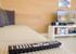 Take the stairs, with handrail, down to the basement floor where there is a large bedroom (again with wooden feature wall) which has two sets of bunk beds and ensuite shower room. The sky light and the glass door, leading to a patio area, add extra light to the spacious room. There is also a separate storage room with washing machine. On this floor there is also a twin bedroom.