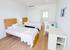 One of the bedrooms is located on the ground floor. It is a spacious double bedroom with wooden floor. Dressing table and lamp are also provided. Patio doors with black out curtains lead to the side patio.