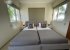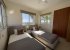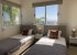Bedroom 2: Twin room with two single beds that open onto a private balcony. The balcony features an outdoor sofa positioned to enjoy uninterrupted sea views — ideal for morning coffee or evening drinks.
