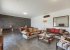 The floors are in grey slate, while darker panels are used along the kitchen wall.