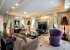Just beyond is another pretty seating area with lavish velvets and a feature fireplace.