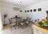 The dining area has a glass topped table and 8 leather chairs with doors opening out to the side garden area.