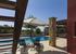 The private pool area is surrounded by large patios with sun loungers, a very nice decking area with outside sofa set and the main terrace for dining which is covered with a pergola fitted with woven fabric for shade. There is an upstairs balcony also which affords wonderful views to the Sea with Paphos in one direction and Coral Bay in the other.