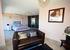 Large bedroom: 2 x 80cm electric adjustable beds which form a queen size bed (160cm). Lounge corner area with a 2-seater sofa and TV. Ensuite bathroom and wc. Terrace with table, two chairs and sea view.