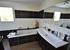 Utility room: washing machine, double washbasin, iron, ironing board and vacuum.