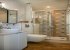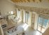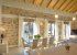 The open-plan living area boasts a high ceiling with wooden beams and large windows that flood the space with natural light. The fully equipped kitchen, with a marble countertop and bar stools, allows you to prepare delicious meals with ease, while the stylish dining area is perfect for enjoying your culinary creations. In the living room, there is a sofa that can be converted into a bed for guests. At the same level, there are two double bedrooms, and on the upstairs level, there is an additional comfortable sofa bed.