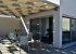 The outdoor space of the apartment features a modern terrace with seating, perfect for dining or relaxation. The terrace is shaded by a pergola, offering a pleasant mix of sun and shade. Guests can enjoy views of the town, the sea, and distant mountains, creating a beautiful and serene environment.