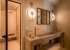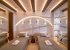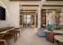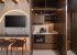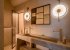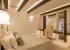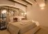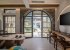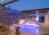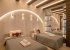 Inside, the villa features two beautifully appointed bedrooms, each with an ensuite bathroom equipped with indulgent sauna and hammam facilities. The double bedroom exudes elegance with soft ambient lighting and mirrored accents, while the twin bedroom provides a cozy yet sophisticated space for relaxation. Thoughtful design elements, such as natural stone arches, sleek black-framed windows, and warm wooden beams, complement the artistic decor and create an inviting atmosphere.