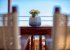 Two steps lead up to the two bedrooms, one double and one twin, and a bathroom with a shower. Both bedrooms have access to balconies.